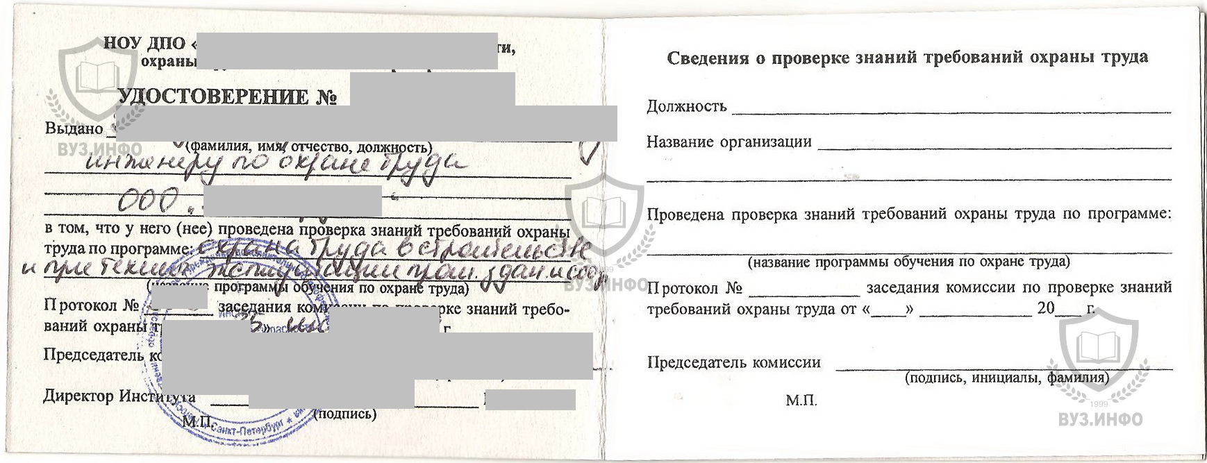 Лучший вариант для покупки удостоверения по ОТ и ТБ обратиться в проверенную компанию. Например в компанию ВУЗ.ИНФО с огромным количеством положительных отзывов от благодарных клиентов.